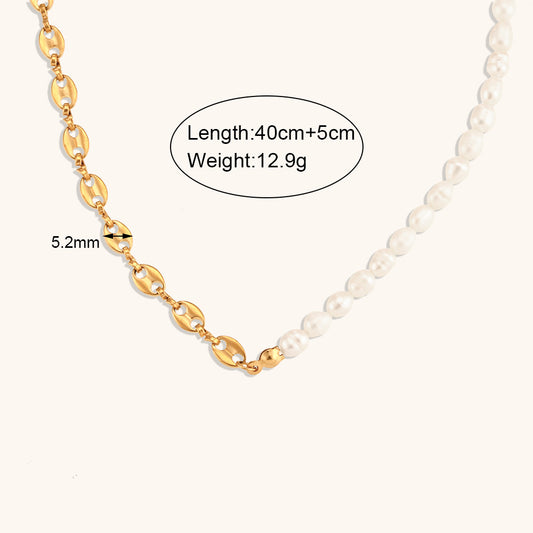 Women's Half Link/Half Pearl Stainless Steel Stitching Necklace